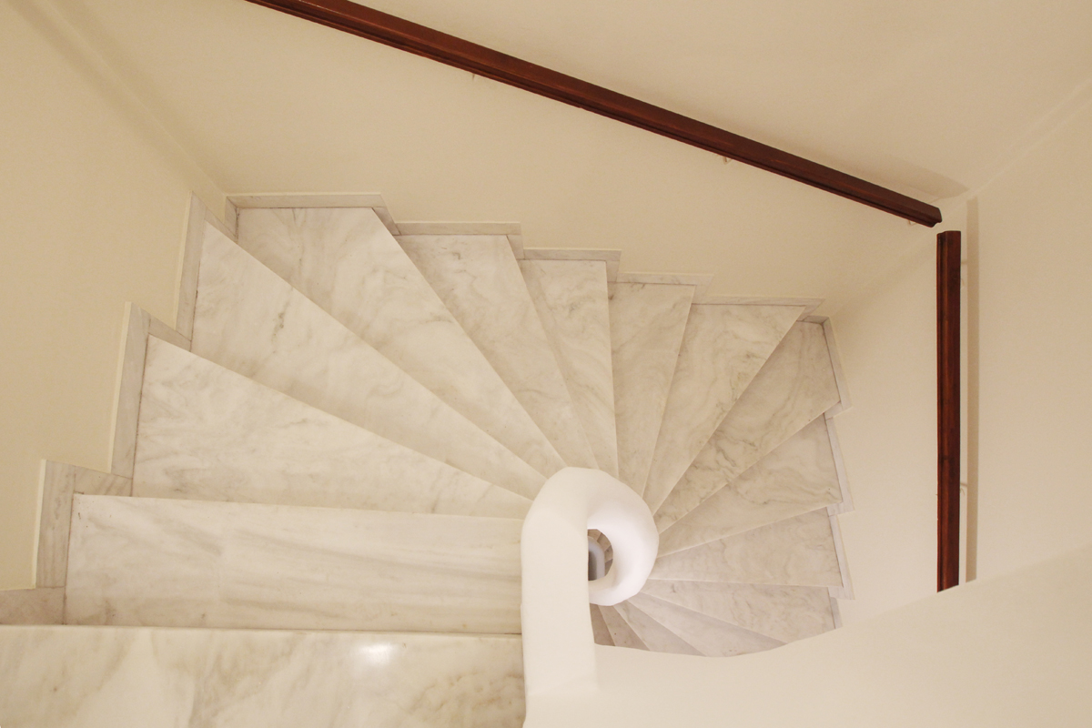 Wir haben die Marmorverkleidungen des Hauseingangs, sowie alle weiteren Marmorflächen im Eingangsbereich und im Treppenhaus instandgesetzt. Im gesamten Gebäude haben wir alle klassischen Leuchten erhalten und fehlende Teile ersetzt.